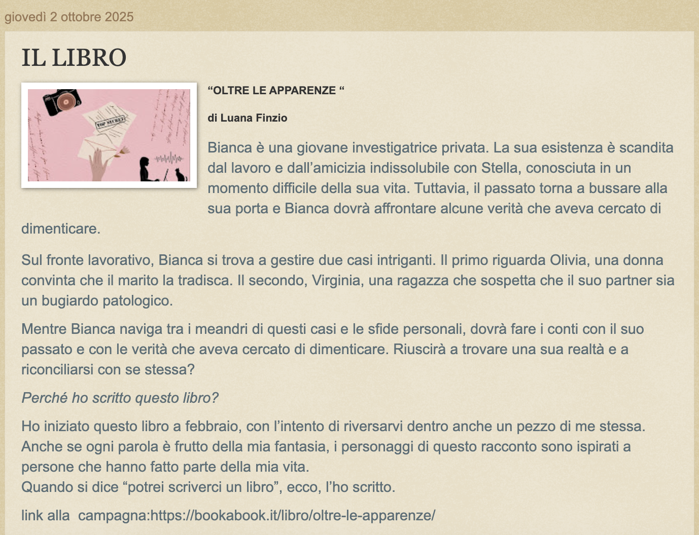 Il libro di Luana è scritto con passione e sono sicuro che sarà bellissimo!