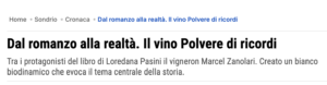 Dal romanzo alla realtà. Il vino Polvere di ricordi. Tra i protagonisti del libro di Loredana Pasini il vigneron Marcel Zanolari. Creato un bianco biodinamico che evoca il tema centrale della storia. Loredana Pasini lo ha messo tra i protagonisti del suo “Arlene Della Morte – Ricordi di polvere“ (Bookabook) e Marcel Zanolari, che nel romanzo fa esattamente ciò che fa nella vita, per prolungare l’esperienza ha voluto creare “Polvere di ricordi“, un vino che fosse una sorta di estensione della narrazione.