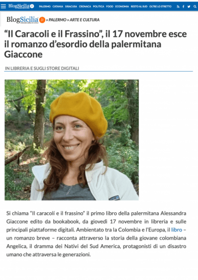 Oggi su Blog Sicilia trovate l’intervista a Alessandra Giaccone, autrice de Il caracolí e il frassino. Ecco il link per leggere l’articolo completo.