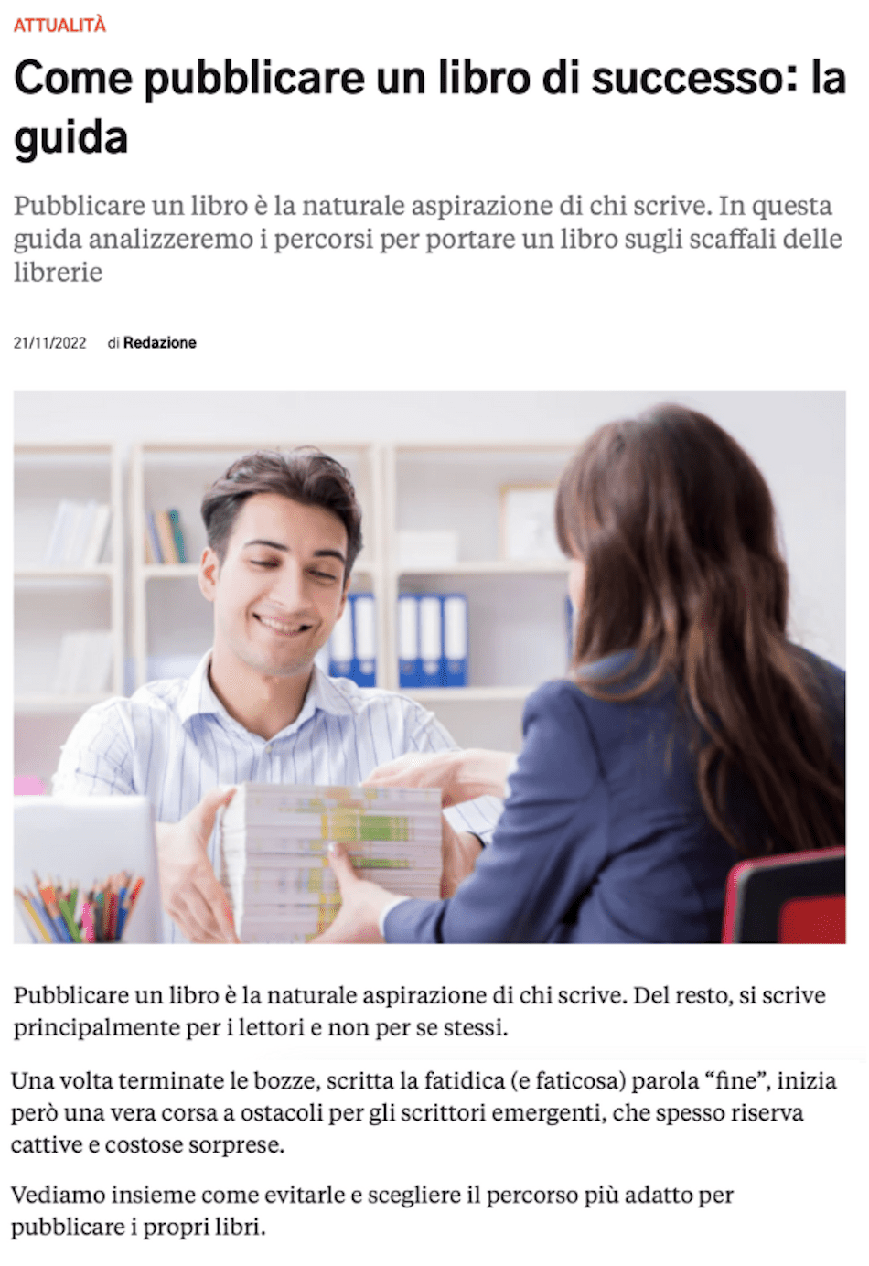 Giornalettismo ha pubblicato una guida per pubblicare un libro di successo. Tra le possibilità suggerite si parla anche di bookabook e di crowdfunding.