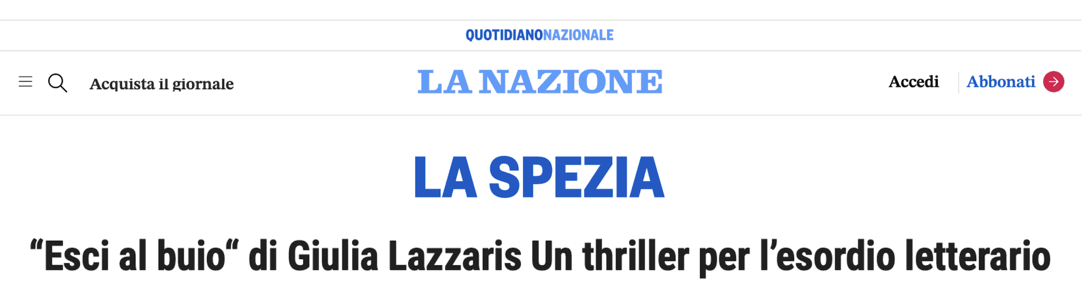 Oggi su La Nazione, alla pagina di La Spezia, si parla del romanzo d’esordio di Giulia Lazzaris, Esci dal buio. Qui, l’articolo completo.