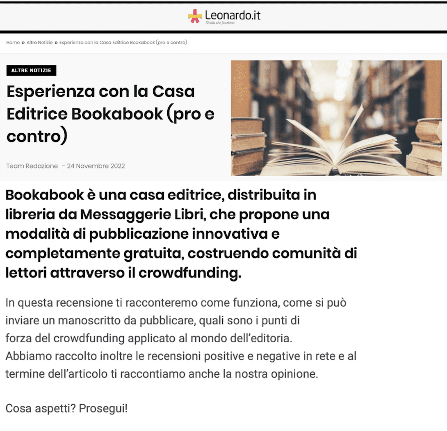Su Leonardo.it si parla di bookabook e delle esperienze con la casa editrice. Qui, l’articolo completo.
