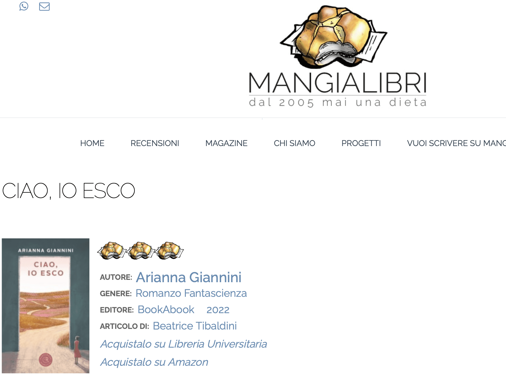 Mangialibri racconta Ciao, io esco, il romanzo di Arianna Giannini. Ecco il link alla recensione.